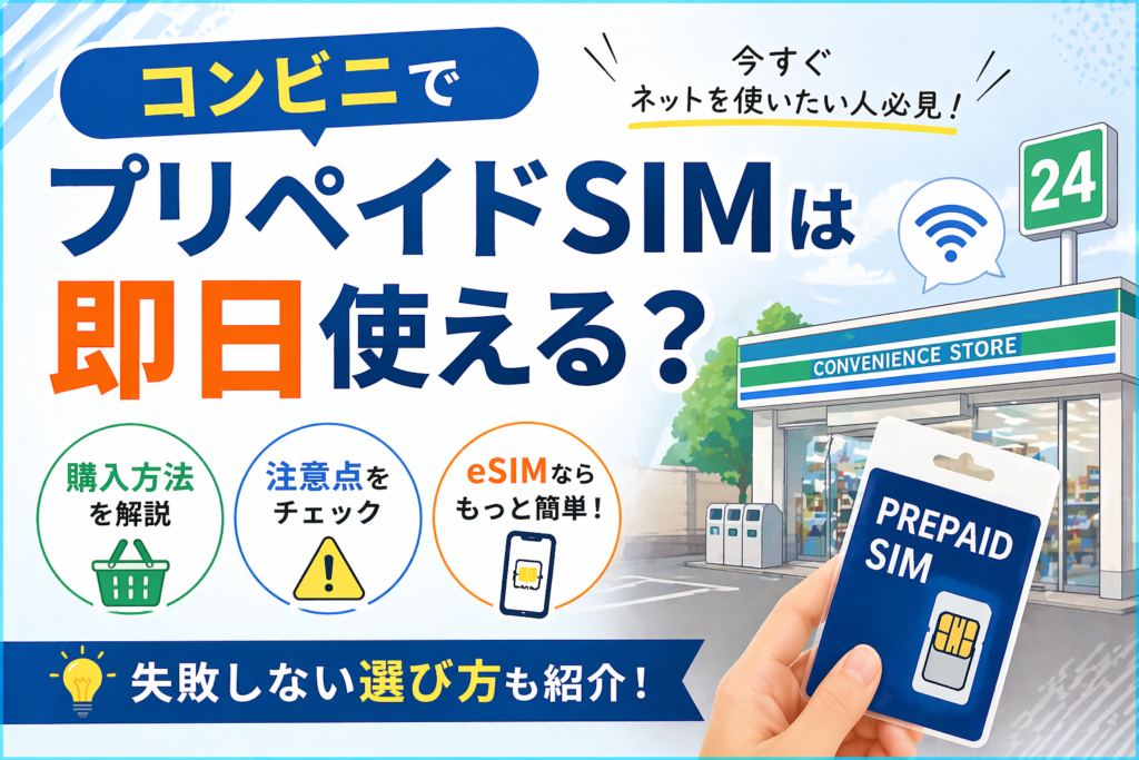 この記事では、プリペイドSIMをコンビニで即日使う場合の注意点や、より手軽に使えるプリペイドデータeSIMについてわかりやすく解説します。