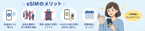 そのほかにも、SIMカードの差し替え不要で普段のSIMをなくしにくいこと、オンラインで申し込みから利用開始まで進めやすいことなど、eSIMには一時帰国と相性のよい要素が多くあります。