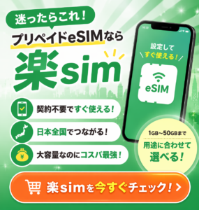 「今すぐ使いたい」「できるだけ手間なく済ませたい」という方は、コンビニSIMよりも楽simのようなプリペイドeSIMを検討してみてください。