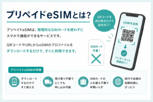 プリペイドeSIMは、物理的なSIMカードを受け取る必要がなく、スマホにeSIMをダウンロードして使うタイプの通信サービスです。